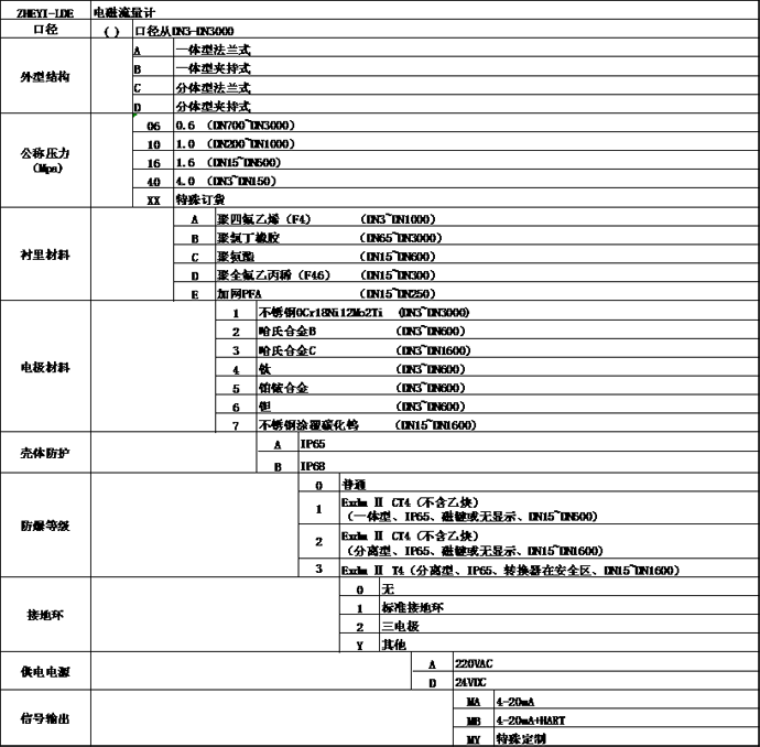 選型舉例:ZHEYI-LDE(DN50)A16C3A02AMA