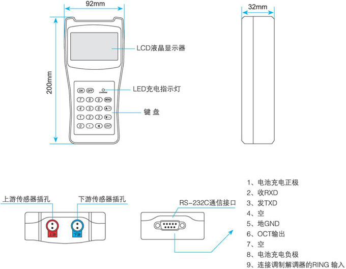 解釋:手持式超聲波流量計,配標準小型、中型、大型傳感器,電纜長度5米*2。