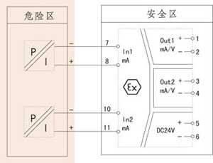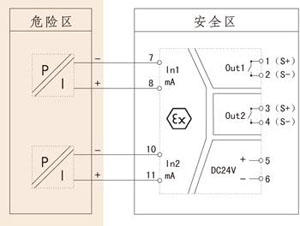 送到安全區(qū),該產(chǎn)品需獨(dú)立供電,輸入/輸出/電源三隔離。可用在電流信號輸出設(shè)備。