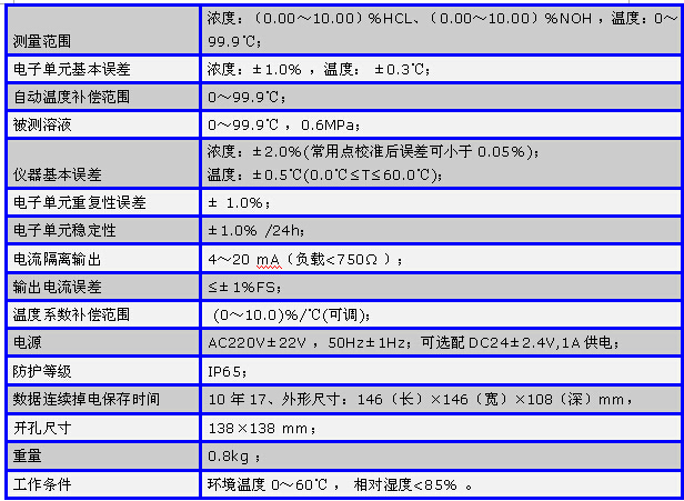 或者用來配制鍋爐、管道酸洗液,對液中酸堿濃度的連續(xù)監(jiān)測。