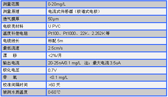 DO100型溶氧電極是一種隔膜式極譜(clark)型傳感器。由傳導性電解質(zhì)連接的一個
