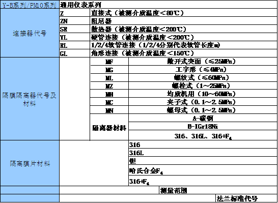 力以及必須避免測量介質直接進入通用型壓力儀表和防止沉淀物積聚且易清洗的場合,應必須采用由隔膜