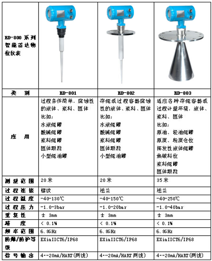 l RD-800系列雷達物位計適用于對液體、漿料及顆粒料的物位進行非接觸式連續測量,適用于溫度、